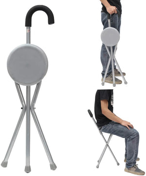 Material: Cane with seat is made of aviation aluminum material, has high hardness, Light weight, easy to carry, easy to fold.